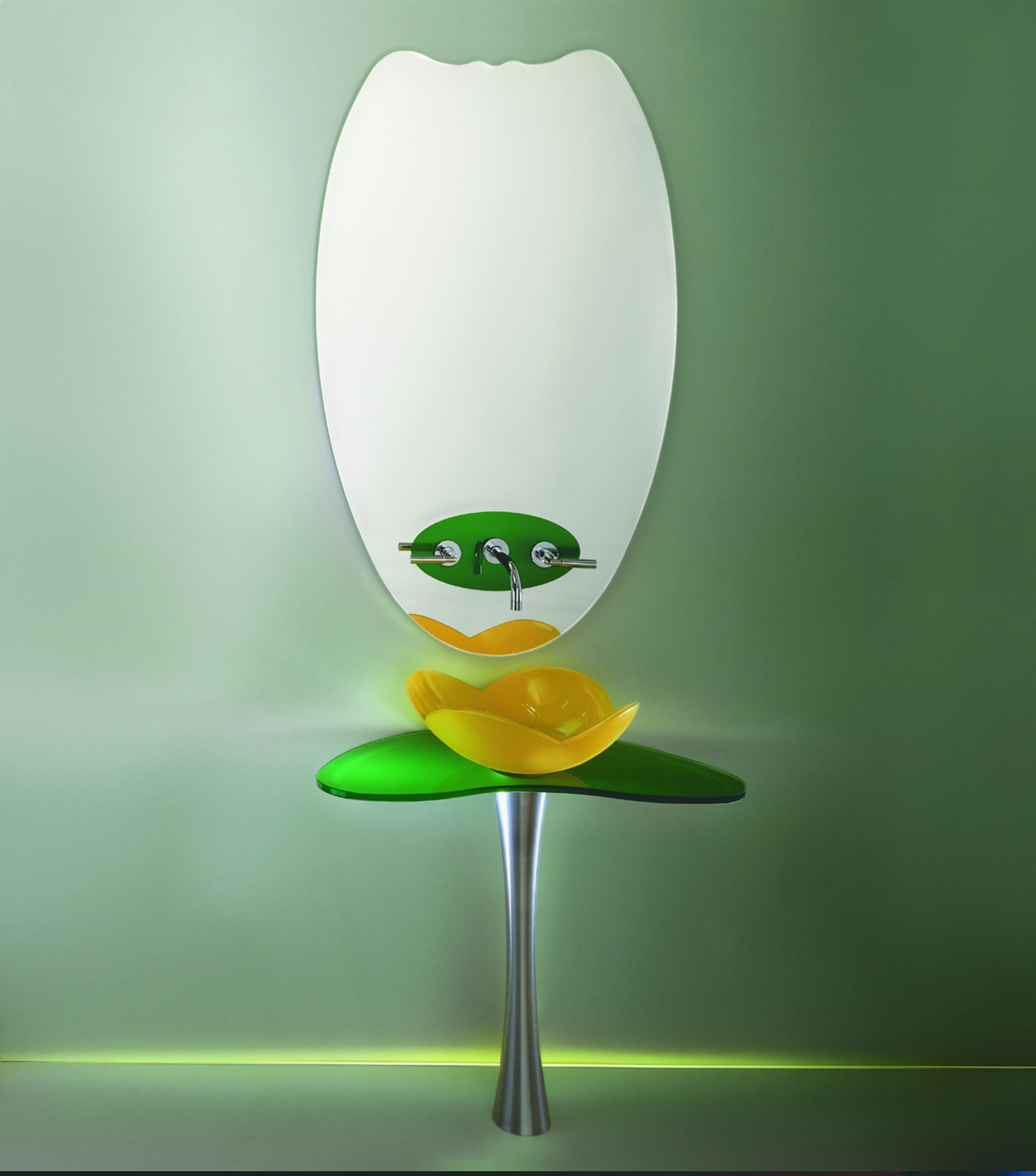 One of our first sink designs – from around 1995. “Flower” was designed as an addition to a custom designed object we made for a client. Produced in several colour versions.