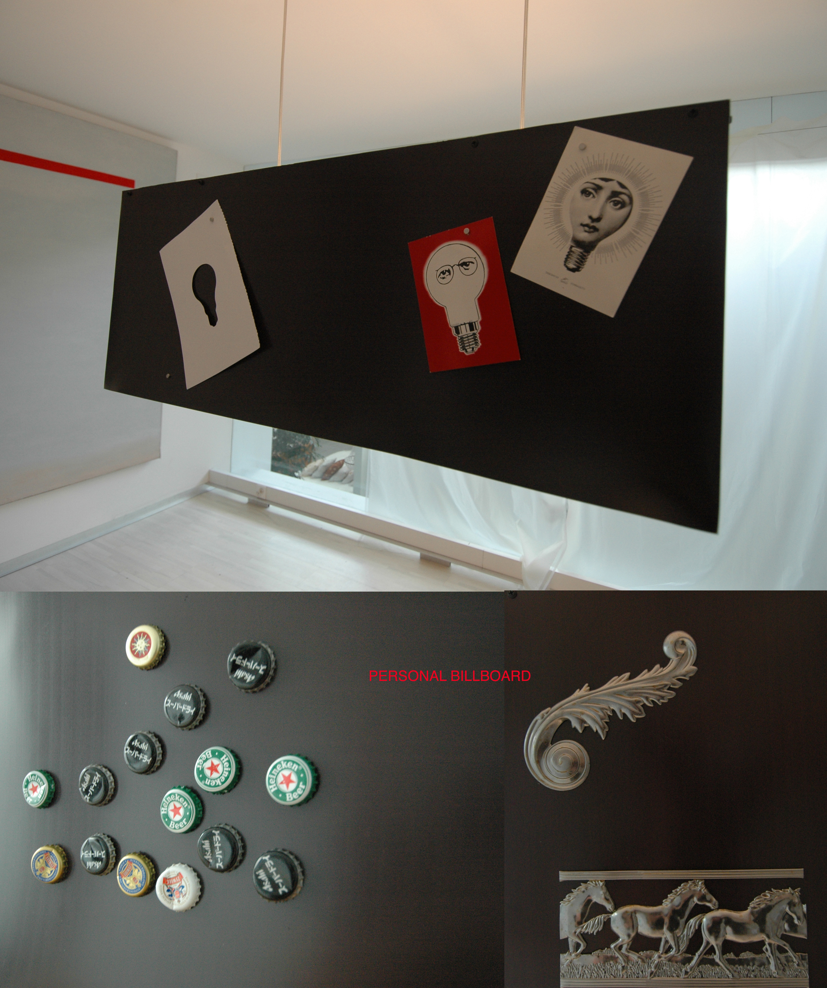 Personal Magnetic Billboard – czyli osobisty magnetyczny billboard to lampa wykonana z grubej folii magnetycznej mogącej utrzymać nie tylko mnóstwo drobnych przedmiotów ale także nożyczki czy sztućce. Można na niej przyczepiać zdjęcia, kartki , pamiątki czy w przypadku zastosowania w barach i restauracjach nawet menu. Idealna do zostawiania rodzinnych wiadomości czy przyczepiania życzeń .