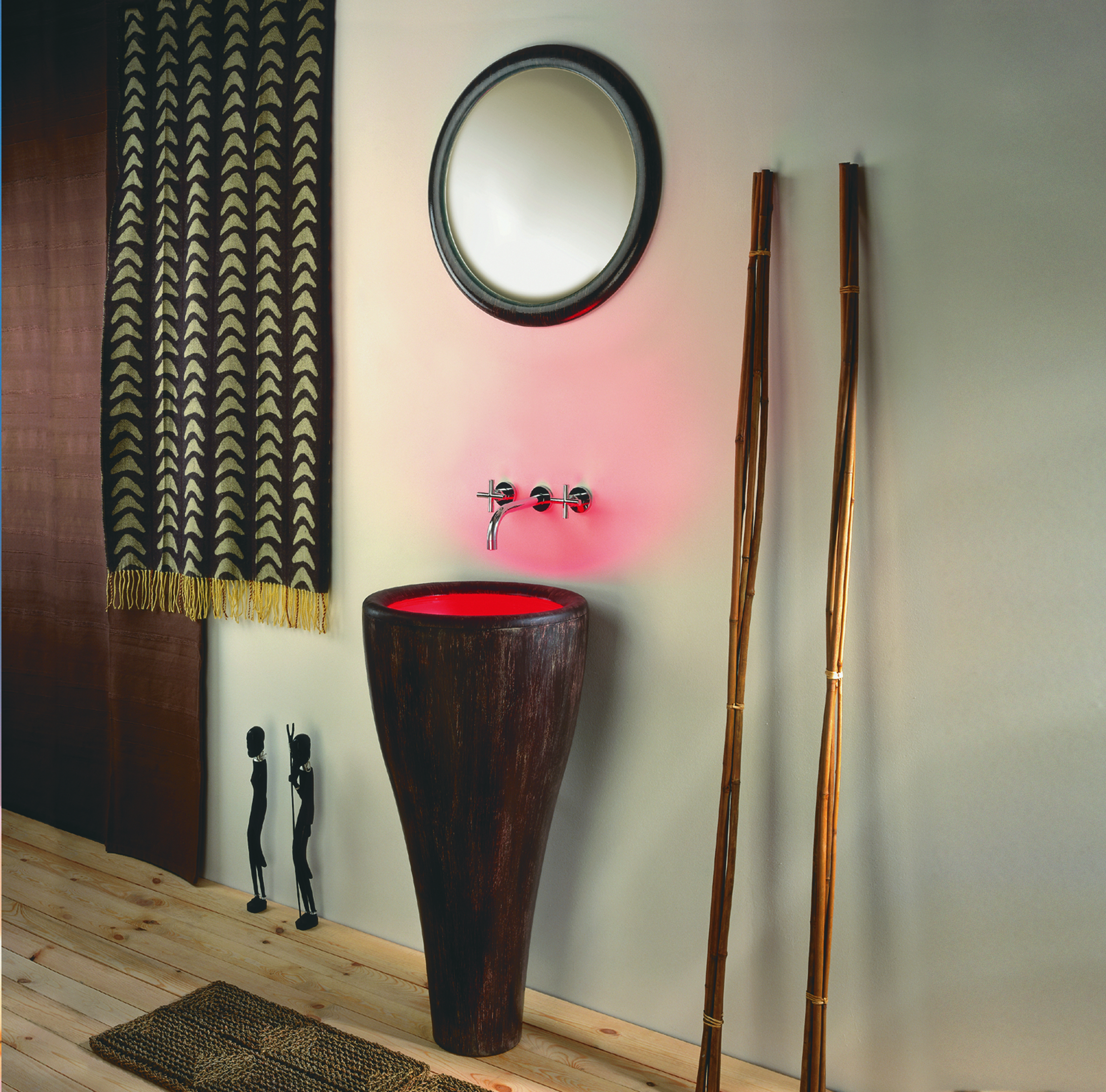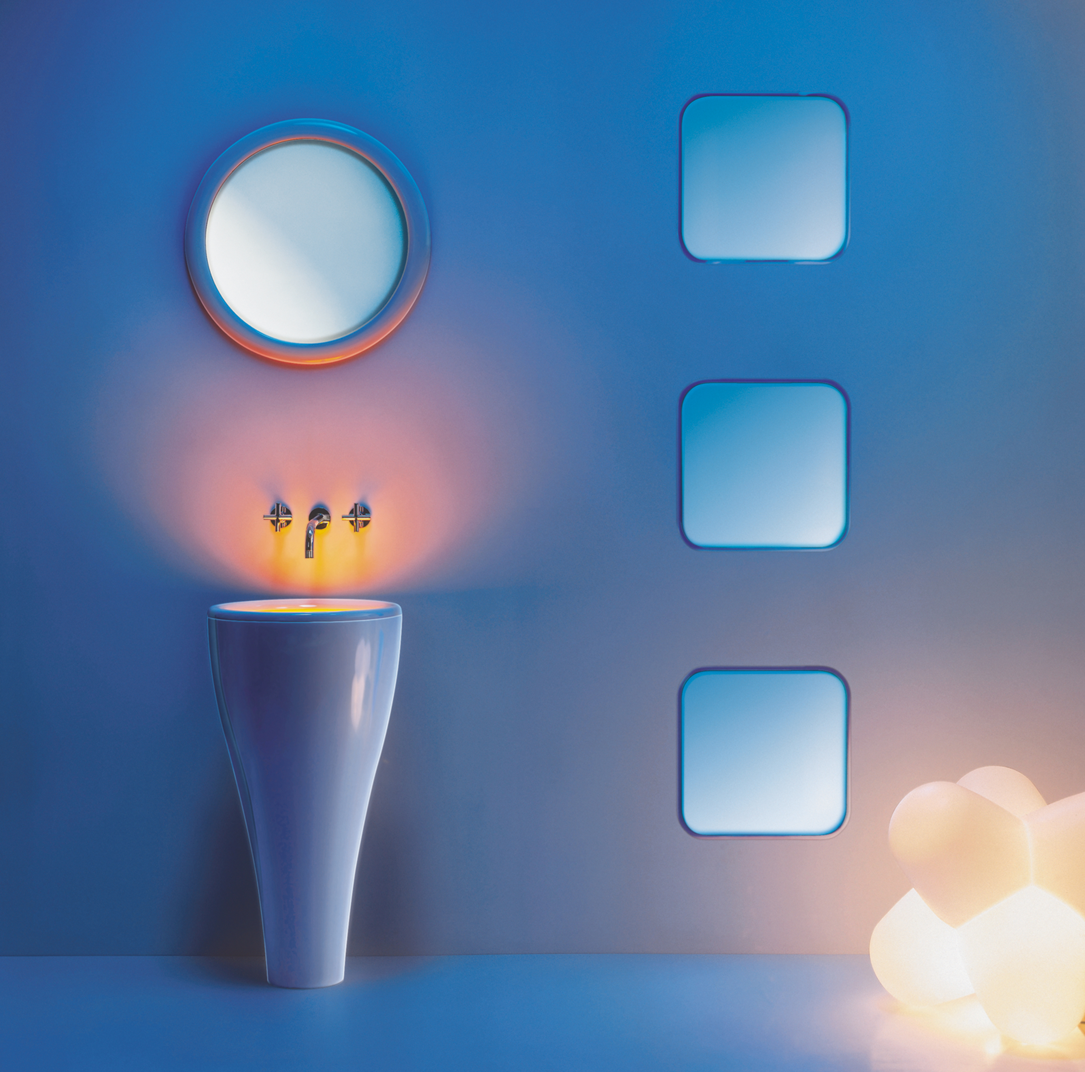 “Tamtam” sink was awarded on the ISH fair in Frankfurt. This innovative piece was designed in three colour versions – white, Wenge wood, and warm grey. A semi-transparent, glass bowl is illuminated from underneath. The project was developed in late 90s when no other objects of this kind, combining decorative lighting with bathroom appliances, were to be found.